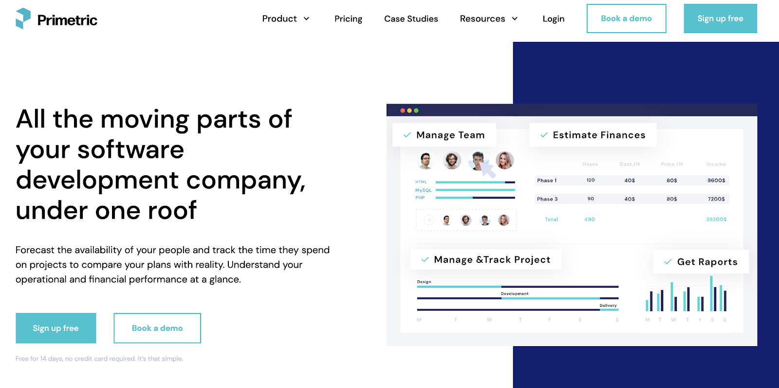 Primetric provides software for resource and finance management. The application helps you with project planning, scheduling, cost/profit management, time tracking, and reporting.